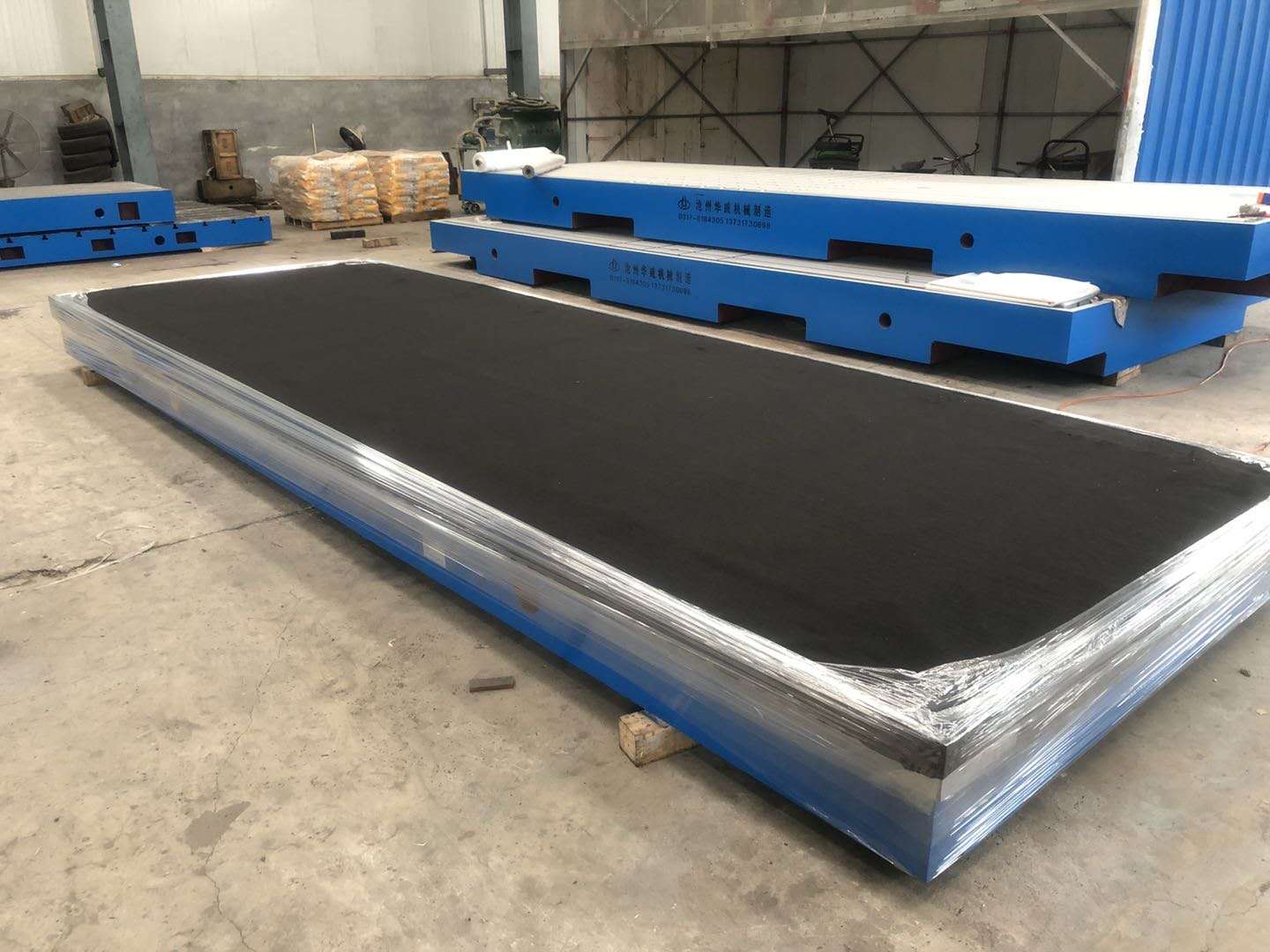 外表清理 铸铁平板,在浇注出来以后,不可少的一道工序,通过清砂处理,可以使铸铁平台表面处理的非常干净延长平台的使用寿命,沧州华威机械制造有限公司